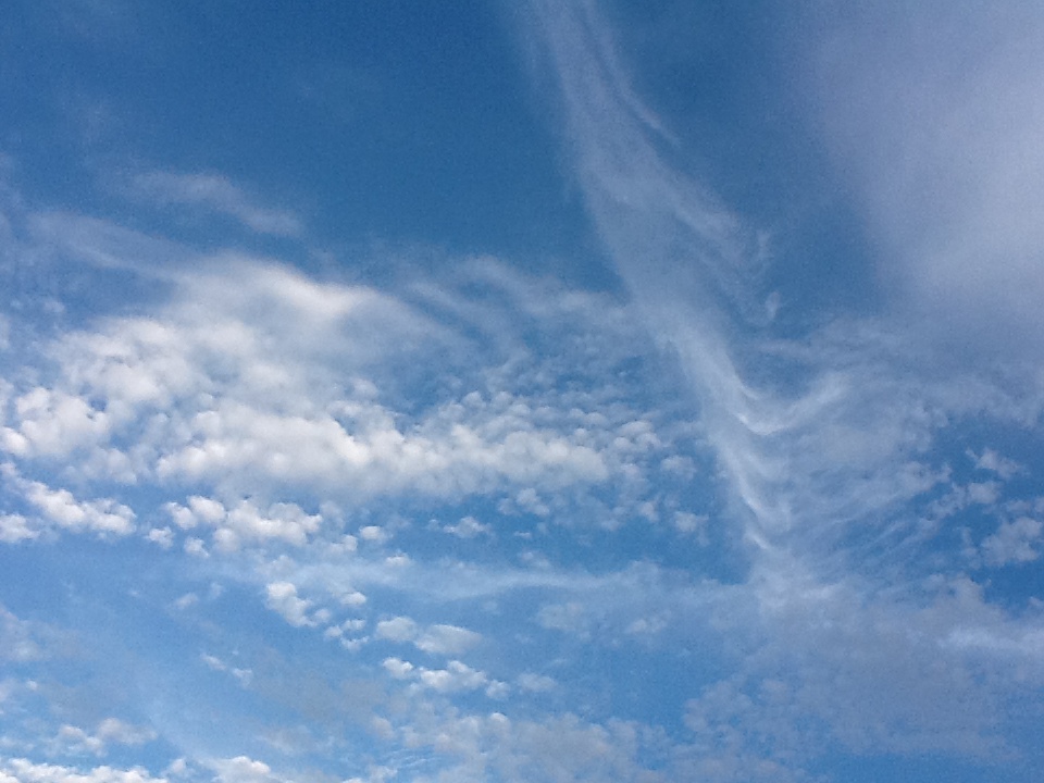 photo 2-3Frequently this summer I’ve been looking at clouds, the way they grow and contract before my eyes, sometimes so imperceptibly I wonder if it’s happening, other times so rapidly I wonder how they can do it. Gazing at the sky may seem like a mundane thing to do, but I recall many a time as a child lying back on the chairs outside my house and watching them glide by for hours, morphing forms as they paraded by as if on a slow moving carousel.