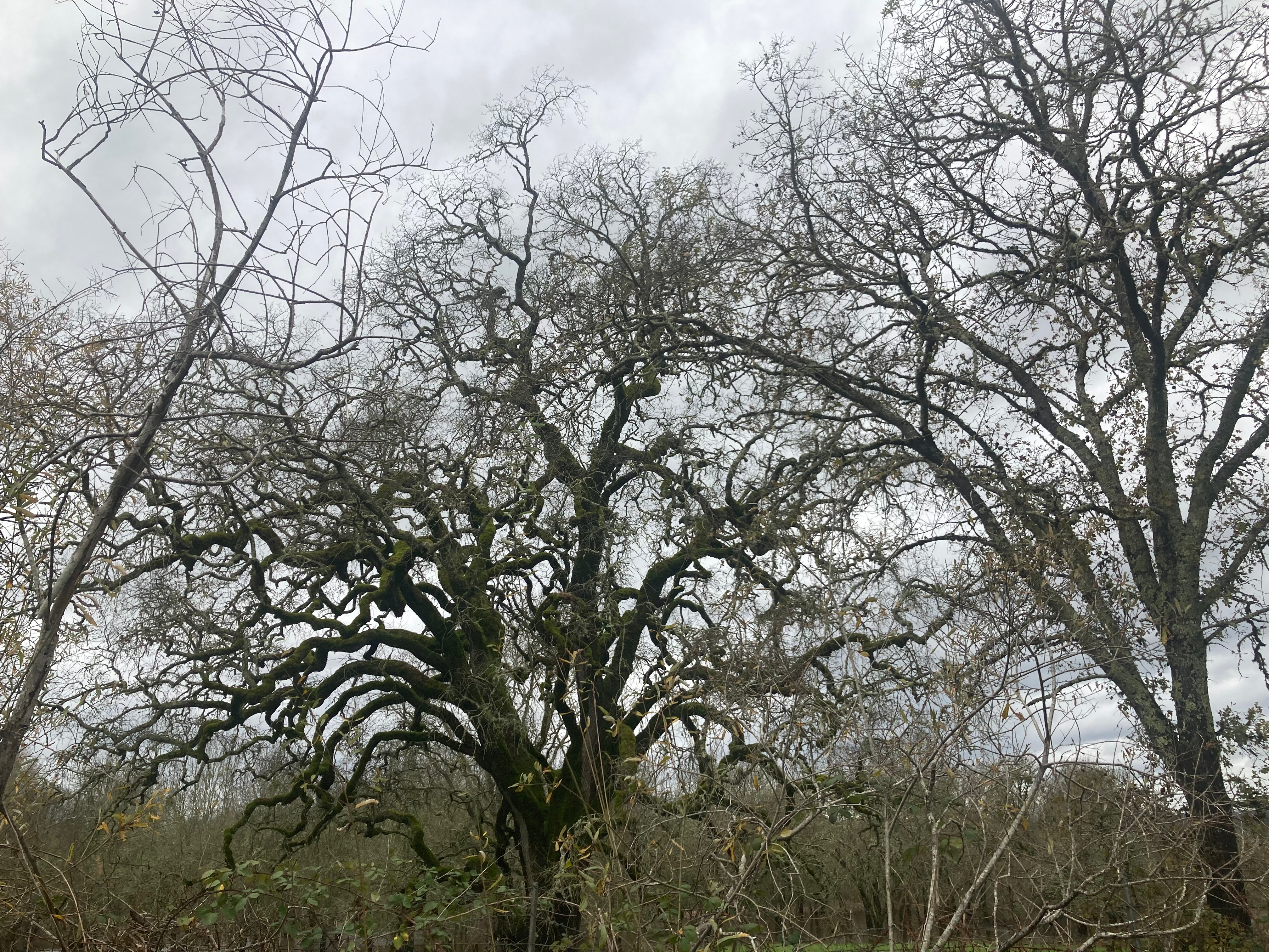 We’re in the midst of January, spring’s burst of buds and flowers are some way off, but when I went for a walk in the late afternoon alongside oaks bathed in yellow light and looked out across fields lit with a fluorescent green glow as if spread with peridot jewel, I couldn’t help but think about resurrection. Yes, it’s cold and the willows’ branches are bare. My backyard garden is bare now too—the peach, sour cherry, fig and apple all stand bereft of leaves. It’s winter. The layers of leaves have fallen away and we see the exposed structure of things. The dying back is necessary. But harbored beneath the soil and inside the roots and trunks of trees life is at work beneath surface of what looks dead, rebuilding what it needs to recreate spring.