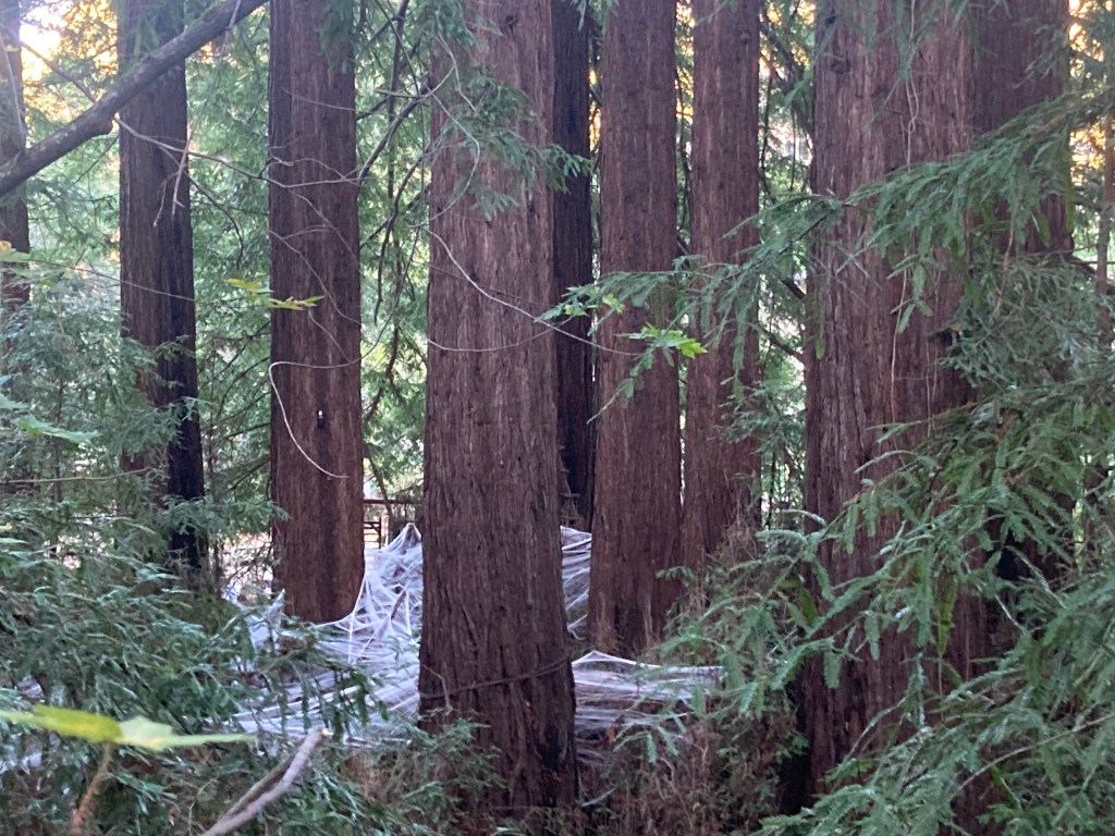 Out for a walk recently, I noticed how a neighbor down the road wove a giant spiderweb helter-skelter through the redwoods, playfully adding to the Halloween atmosphere. Perhaps it’s a good idea, to look at what webs of fear we’ve wrapped around events and people in our lives and how these hinder our thought and movement. Kay Ryan in her poem, “Spiderwebs” writes, “It isn’t, / ever delicate, / to live.” How do we live courageously and open-heartedly alongside events and people that can cause fear and create the conditions that expand a greater experience of life’s regenerative qualities rather than responding defensively, running away, or shrinking back into ourselves?
