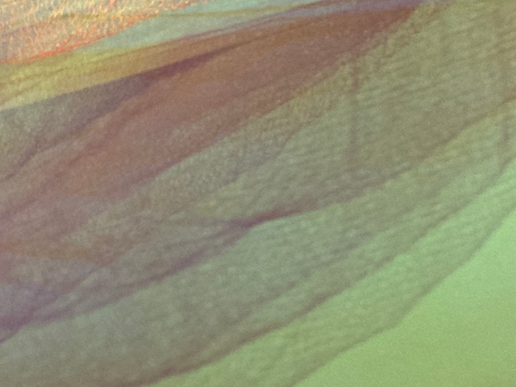 Echelman’s piece is meant to be a meditation on the “contrast between forces we understand and those we cannot, and the concerns of our daily existence within the larger cycle of time.” I felt I’d entered a magical door and was floating inside an enchanted room. The prodigious size of the work, both mammoth pendulous nets as well as the massive length of contoured lines reaching across the carpet, everything bathed in prismatic color, carried me into a place of awe where beauty’s presence suspended time and wrapped me in wonder. Indeed, I felt a power at work in the art piece that can be experienced but not fully described.