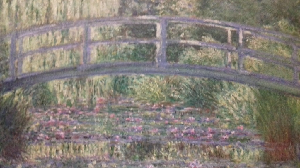 Recently, I visited several museums in Paris where I viewed many of Monet’s paintings and learned more of his biography. What especially struck me were the many uncertainties in Monet’s life that could’ve threatened his painting career. Monet’s mother, who supported his interest in art, died when Monet was sixteen. At twenty, Monet was drafted into the army where he served in Algeria for two years before getting typhoid. Later, his first wife died leaving him with two sons. Twice he had operations for cataracts. The weight of having to provide for an additional six children he gained from his second partner, the work it was to take care of his gardens at Giverny—these many difficulties, yet no sense of these tensions surfaces in his paintings.